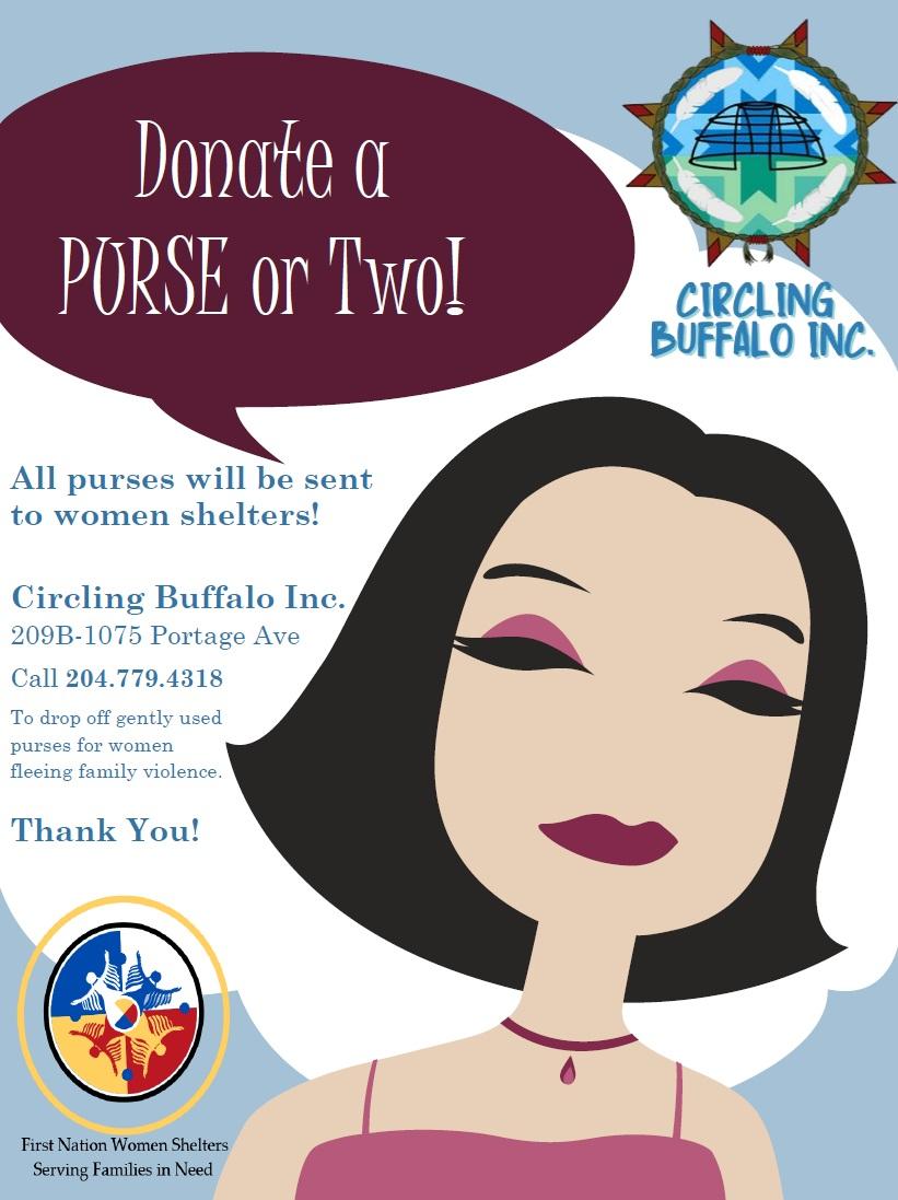 Circling Buffalo Inc. is gathering used purses for women fleeing family violence. All donations collected will be sent to on-reserve women shelters throughout Manitoba.